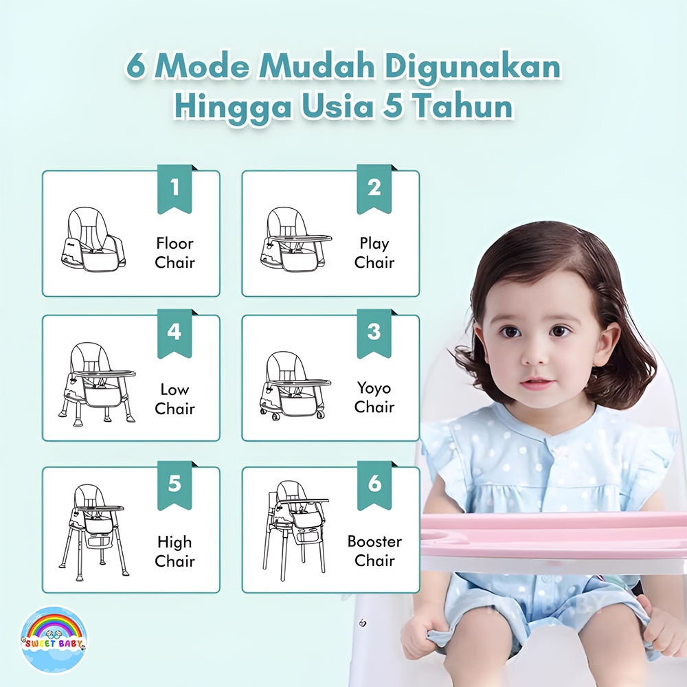 [Mall] Kursi Makan Bayi 6 In 1 | Booster Seat & High Chair Sweet Baby