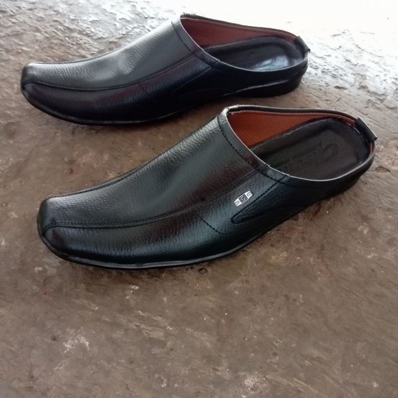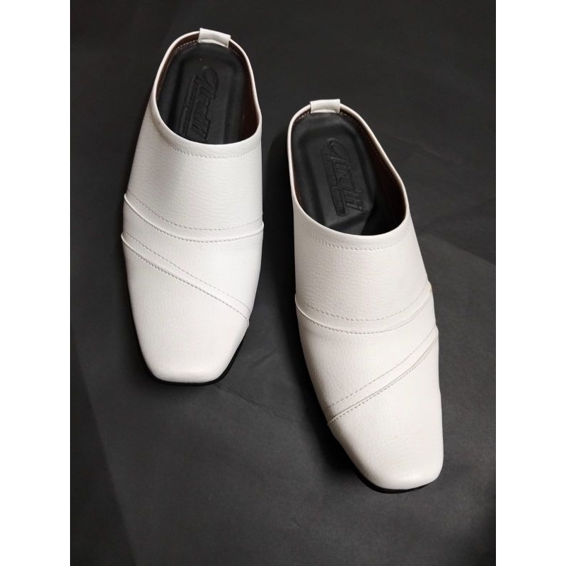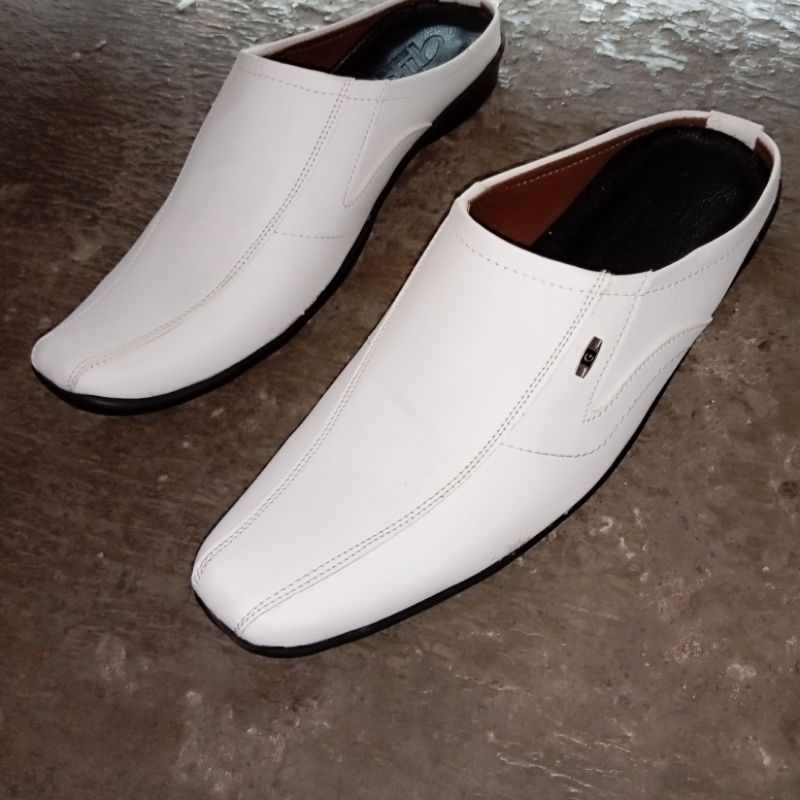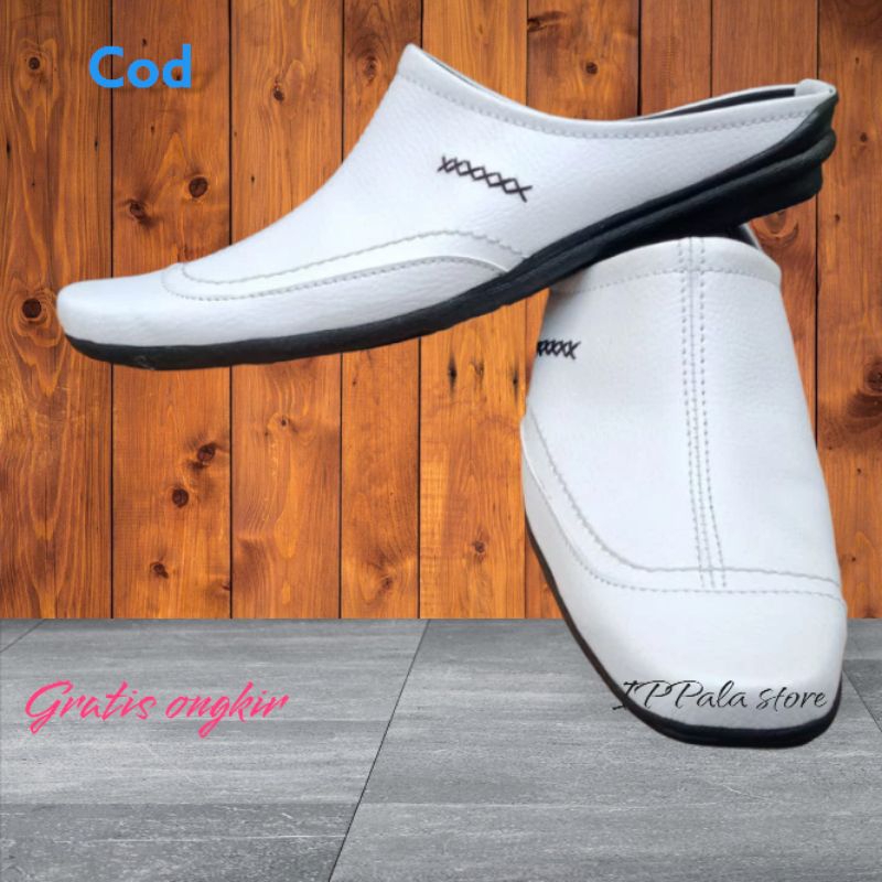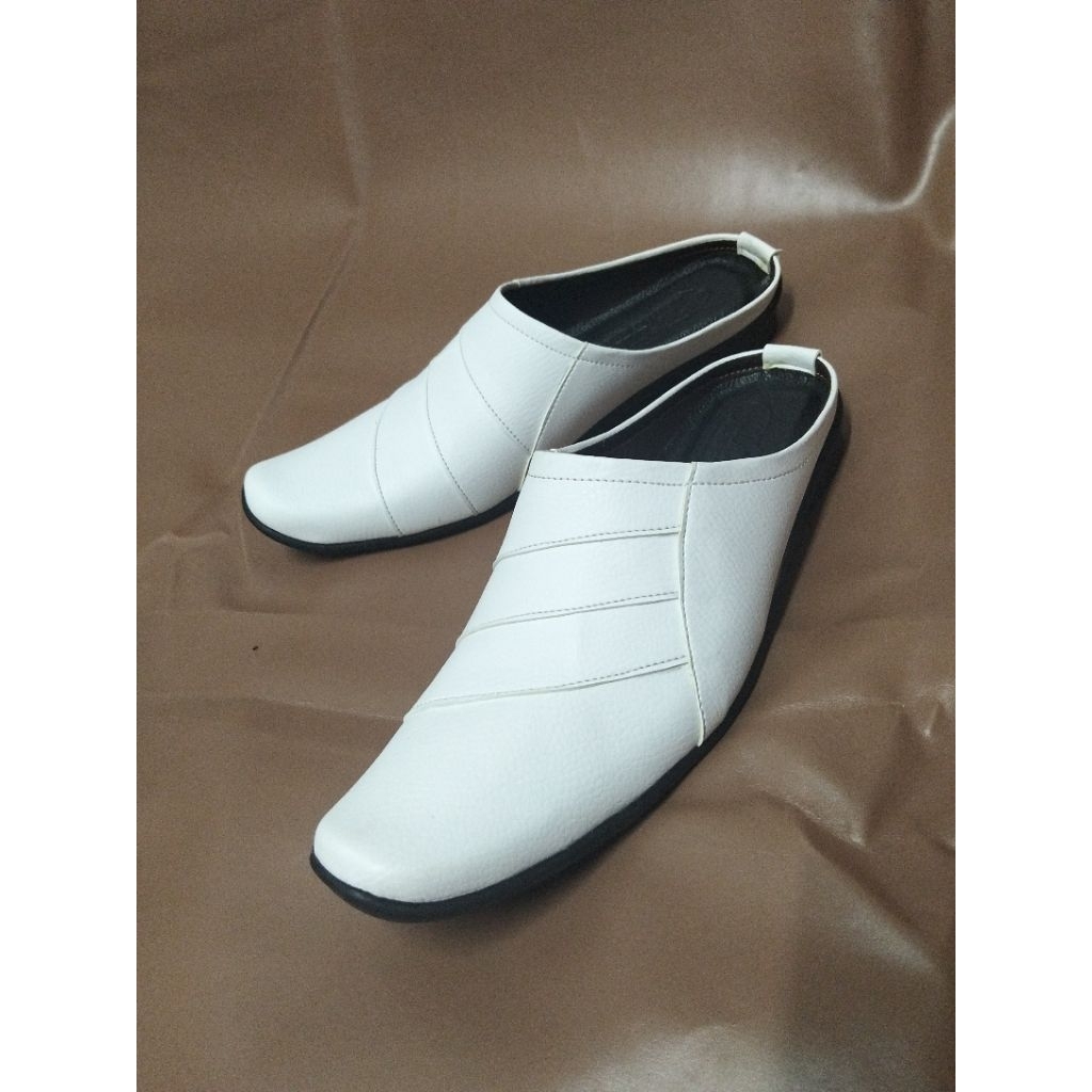 sendal sepatu cowok sendal slop pria/slop putih tutong bustong pria/sepatu slop pria hitam dan putih