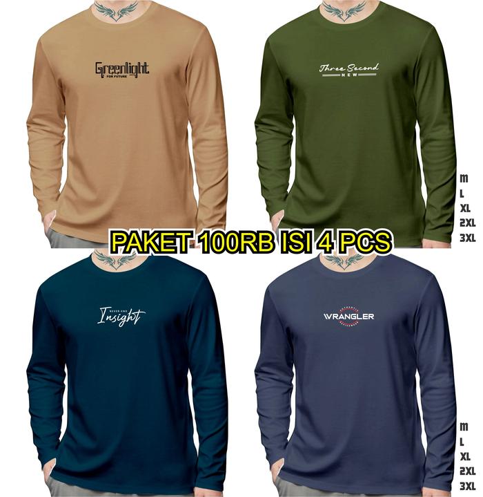 ( SPESIAL ) Paket hemat isi 4pcs kaos lengan panjang model oblong reguler - baju unisex dewasa