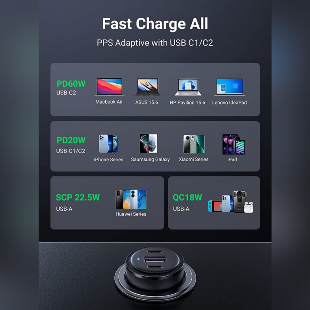 [Star] Ugreen Car Charger Mobil Fast Charging Iphone Samsung Laptop Macbook Pro Air Usb C Port