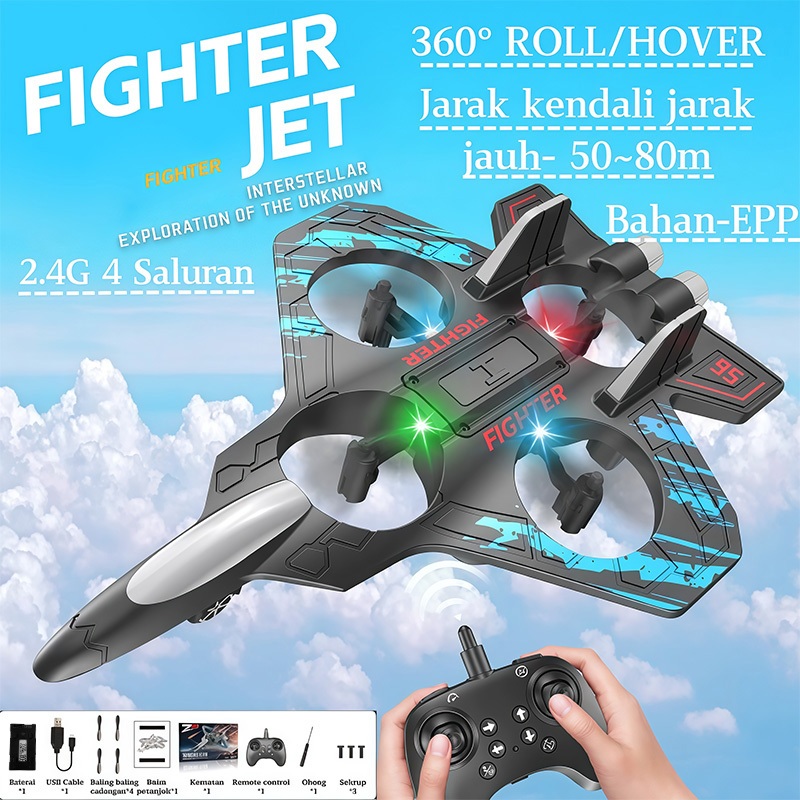 Mainan Drone Pesawat Tempur RC 2.4G – Glider LED EPP Foam Tahan Banting Anak