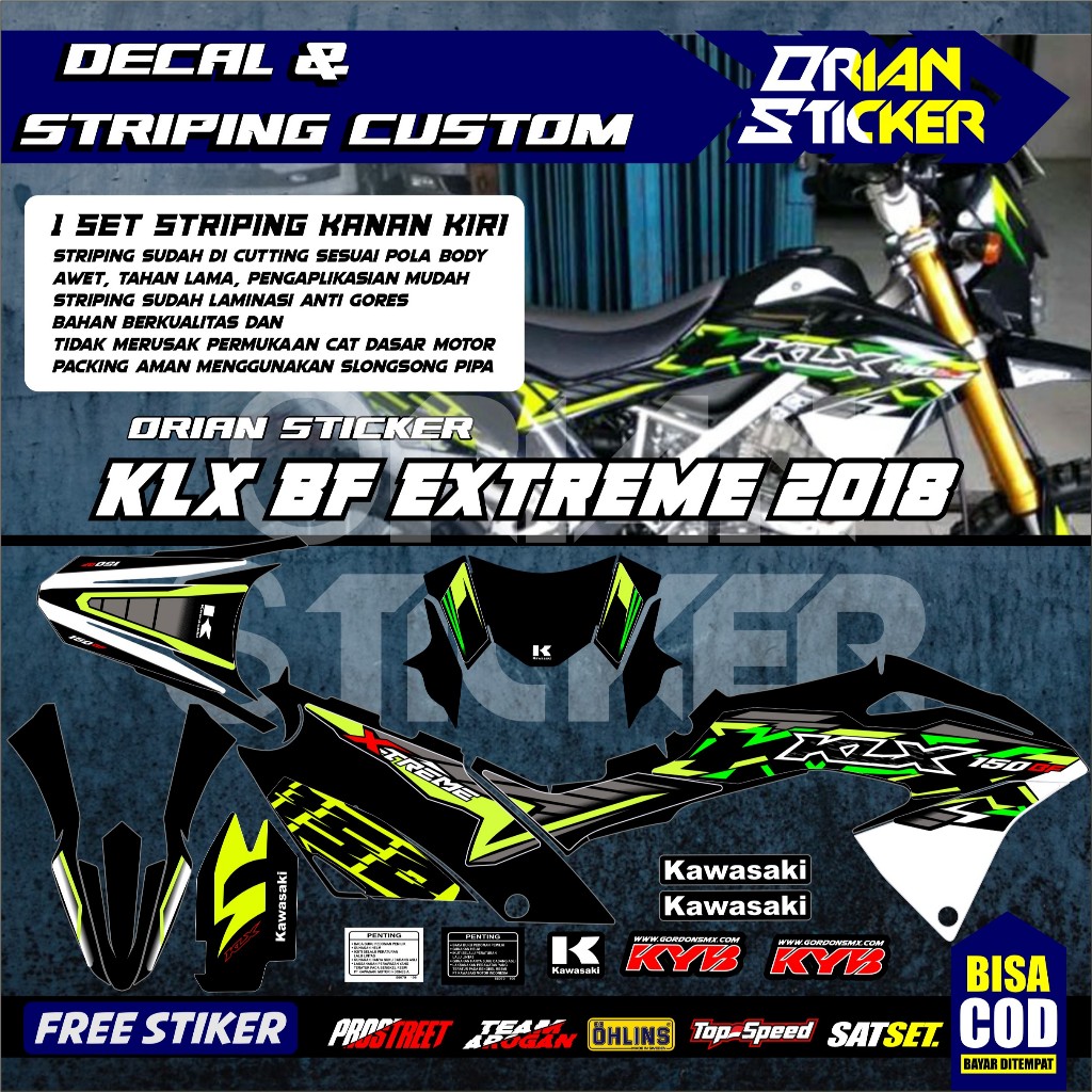 Striping Kawasaki klx bf extreme 2018 Hijau hitam, striping ori klx bf 2018 merha hitam biru
