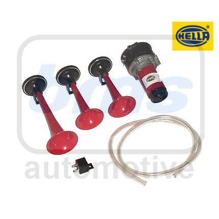 Klakson Hella 3 Trompet 12V Compressor Horn Set + Relay