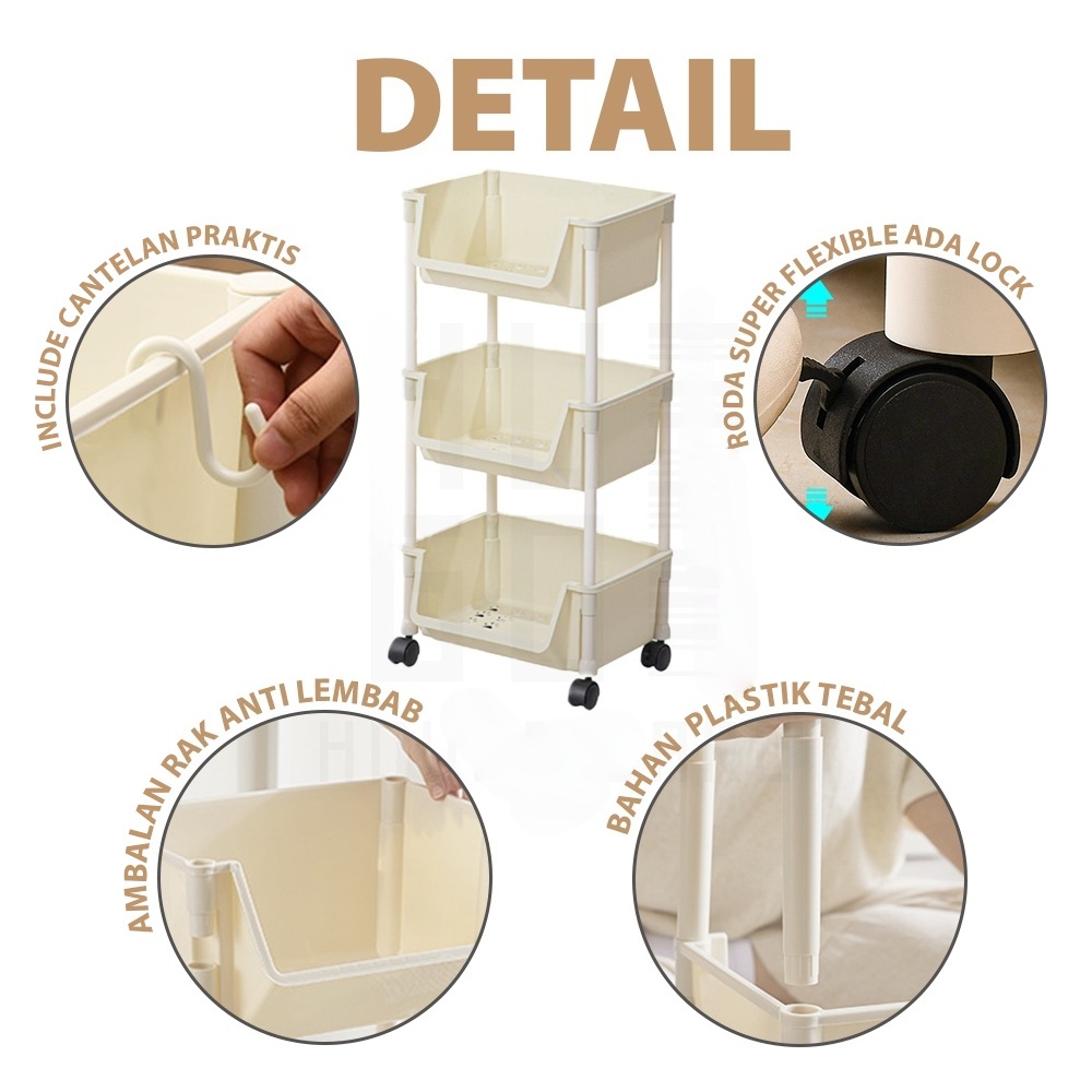 Rak Dapur Dorong Rak Buku Plastik Serbaa Rak Troli Toilet Kamar Mandi Susun dengan Roda