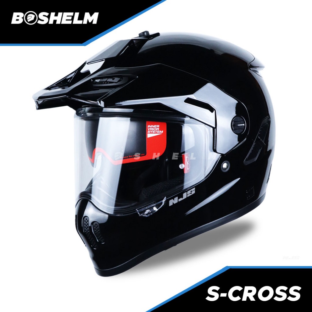 [Mall] HELM NJS S-CROSS SOLID HITAM GLOSSY HELM FULL FACE SNI PAKET GANTENG ORIGINAL SNI BERKUALITAS VIRAL TANPA DP