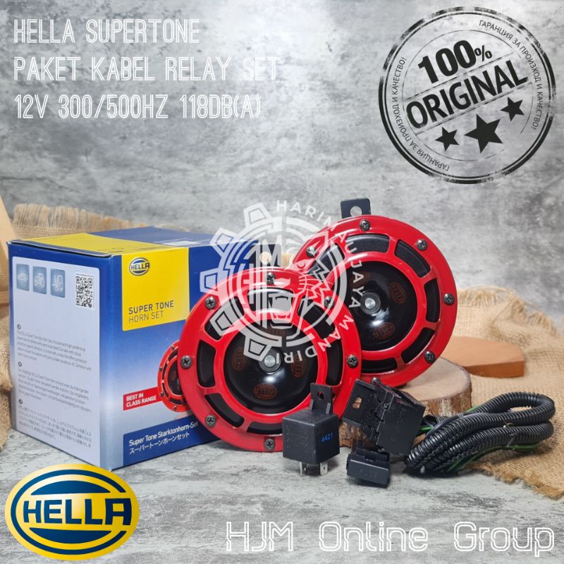 KLAKSON HELLA SUPERTONE - HORN SET SUPER TONE HELLA 12V RED + CABLE RELAY SET