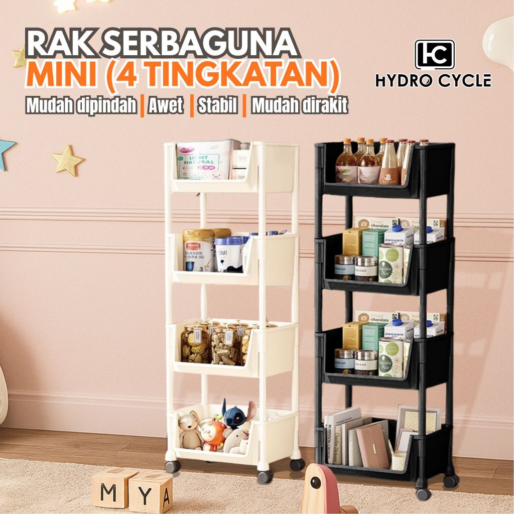 Hydrocycle - Rak Troli Plastik Susun Serbaa Rak Kamar Mandi Dapur Kosmetik Dengan Roda - PBR-Q