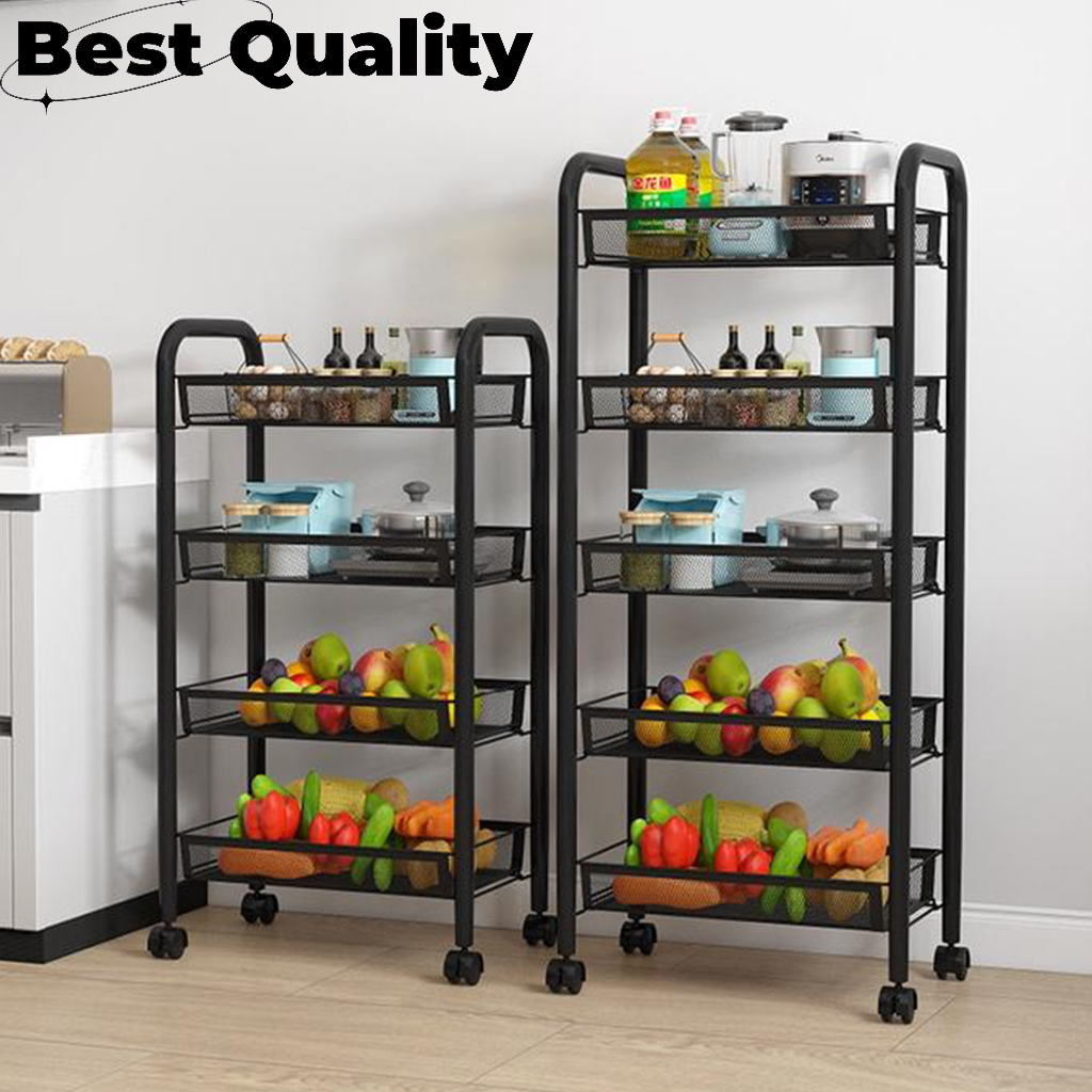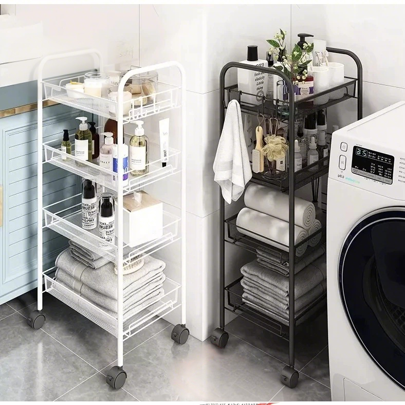 FITGO Rak Troli Susun Plastik Serbaa Persegi Panjang 4 Susun Rak Dapur Rak Salon Tempat Penyimpanan Rak Toilet Kamar Man
