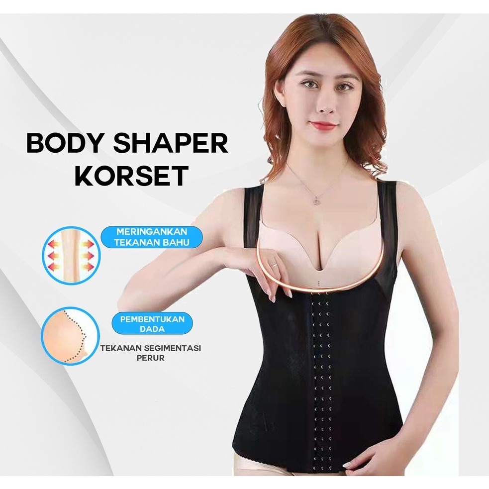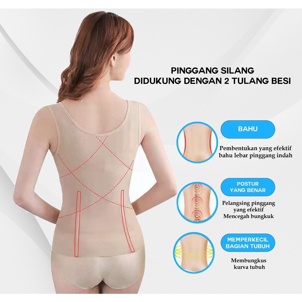 Korset Pengecil Perut Korset Pelangsing Long Torso Slimming Suit 6 Pengait 4 Tulang Stagen Shapewear