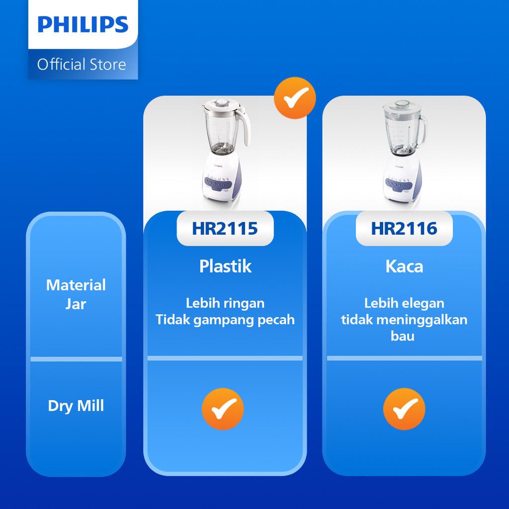 Philips Blender HR2115/00 - Blender 2 liter - Blender Philips jar plastik 350 W - Grey