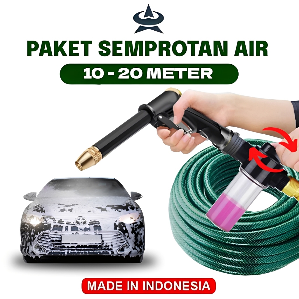 GEMUK Paket Selang Air Cuci Motor Mobil Dengan Watergun Spray Soap Dispenser 10 - 20 Meter Semprotan Air Dengan Tabung S