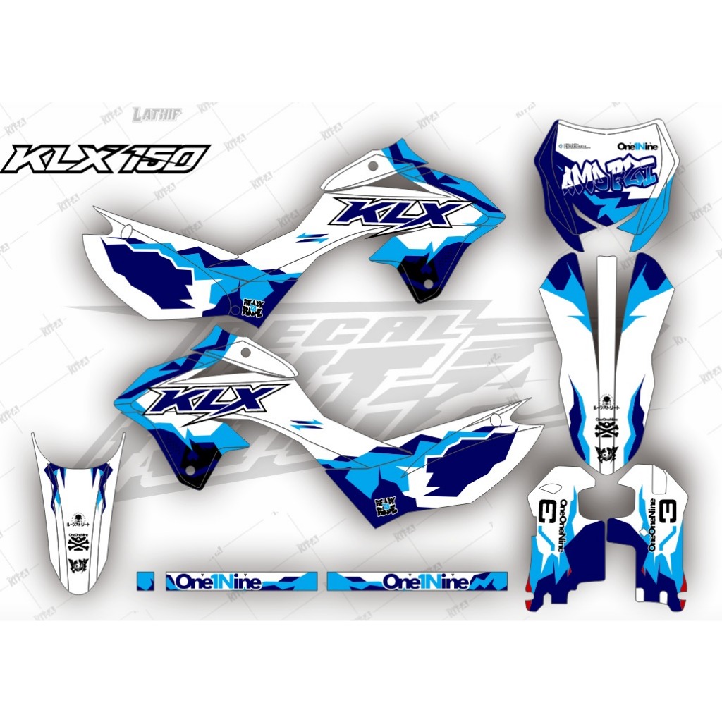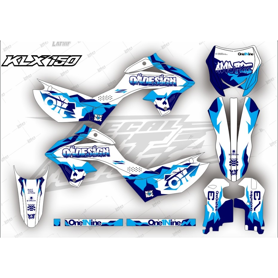 Decal KLX 150 SM 2025 terbaru stiker decal new klx sm 150 MOTIF GRAFIS MATE BLUE HIJAU D-A8-066