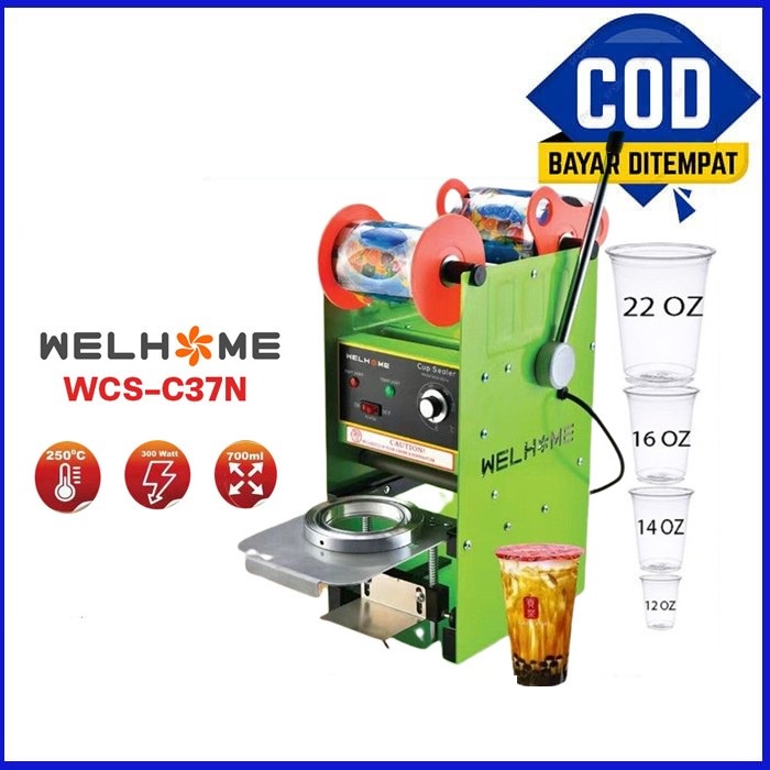 Welhome WCS 37 Cup Sealer Press Plastik Gelas OZ 22 Ukuran (12 sampai oz22)