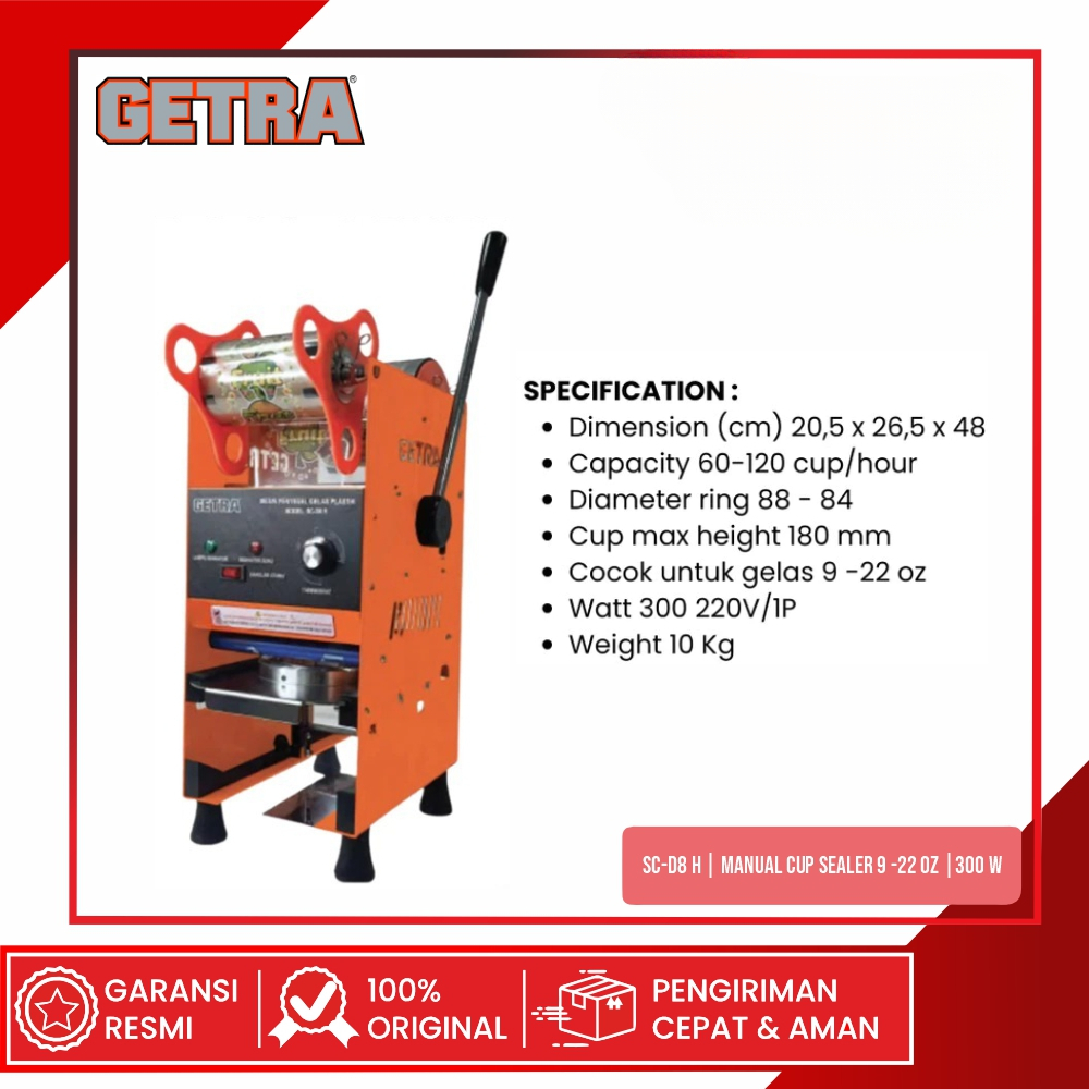 GETRA SCD8 SC-D8 H ORANGE MANUAL CUP SEALER UNTUK GELAS PLASTIK 300W - GARANSI RESMI