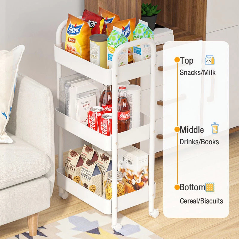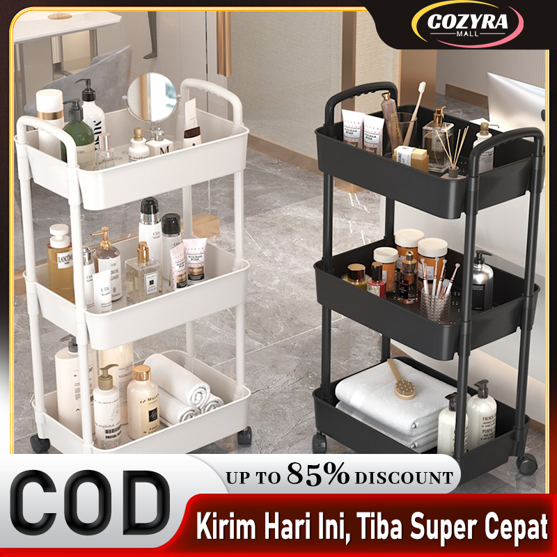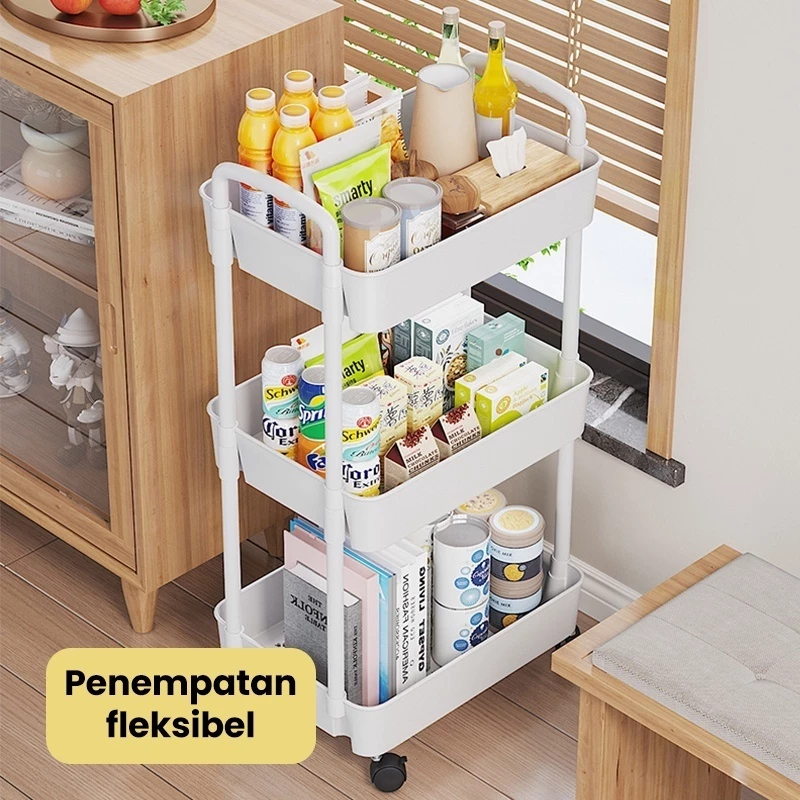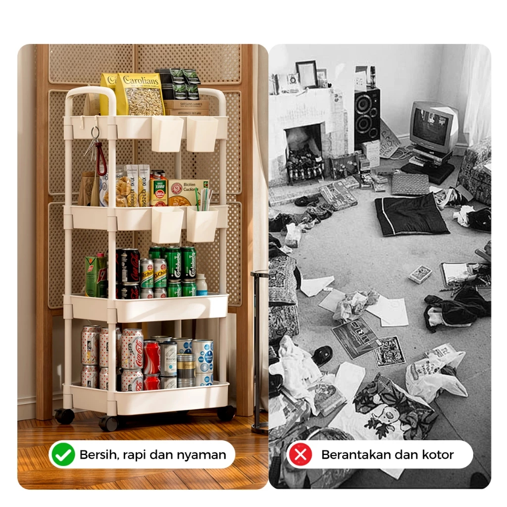 Rak Plastik 4 Tingkat Multifungsi dengan Roda | Rak Serbaa Persegi untuk Dapur, Toilet & Kamar Mandi - Portable & Anti K