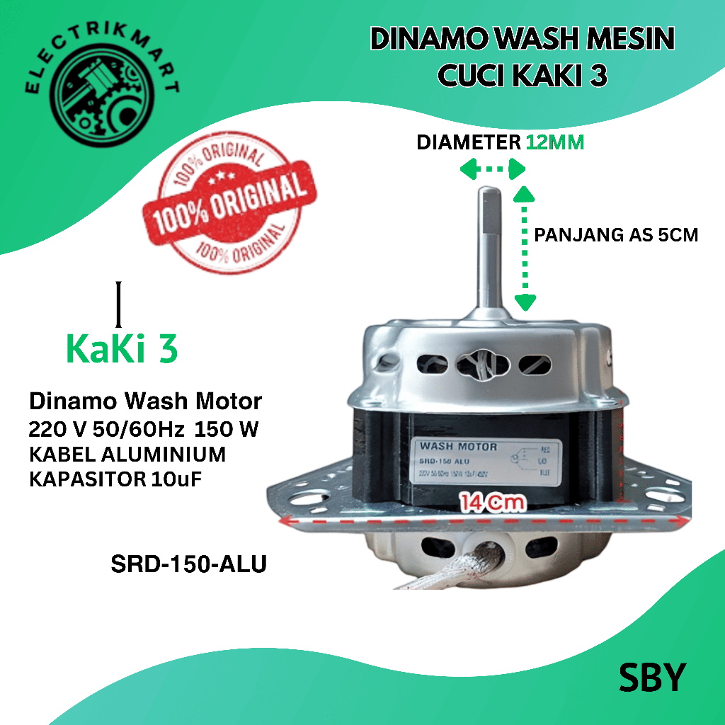 Dinamo Pencuci ALU Mesin Cuci Umum As 12 mm (I) SRD-150-ALU