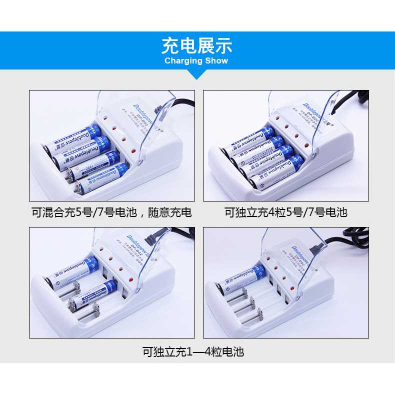 Doublepow Charger Baterai 4 slot AA/AAA Bonus 4 Pcs Batu Batre Rechargeable NiMH - DP-B02