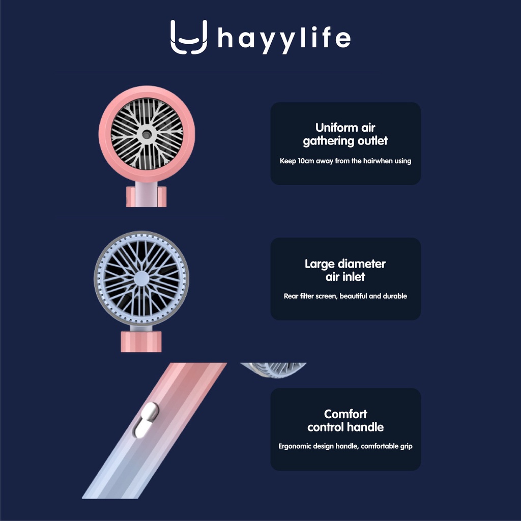HAYYLIFE Hairdryer Lipat - mini angin kuat tidak bising blueray pengering rambut HL-DBA595