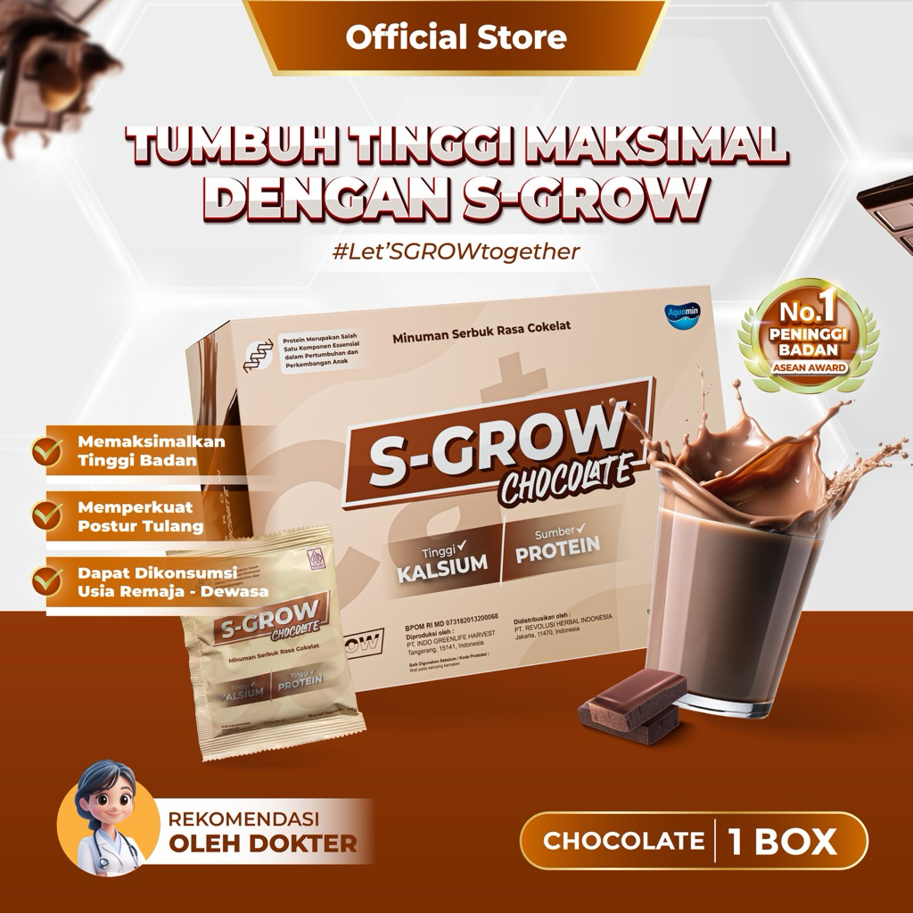 S-GROW 1 BOX – Susu Peninggi Badan Remaja & Dewasa Terbaik | Varian Coklat