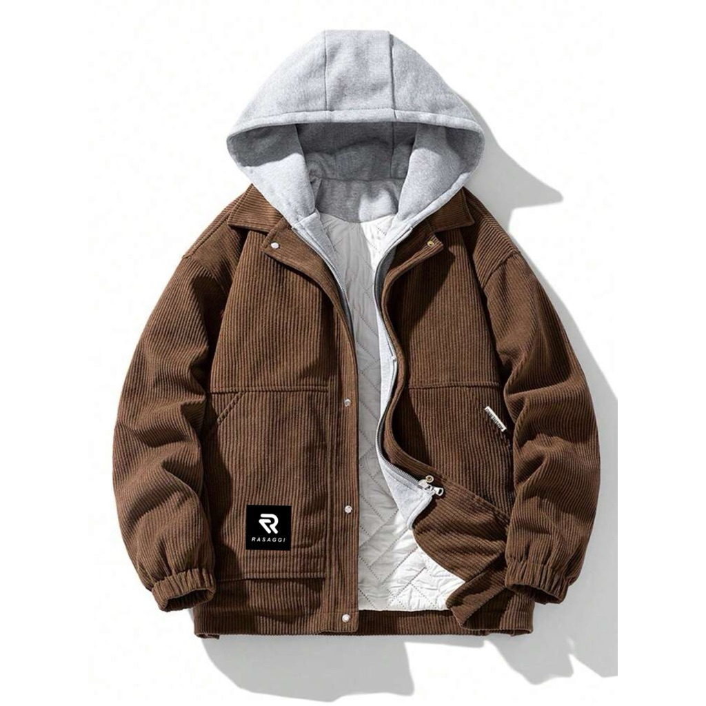RASAGGI Corduroy Jacket Thick Hoodie Grey