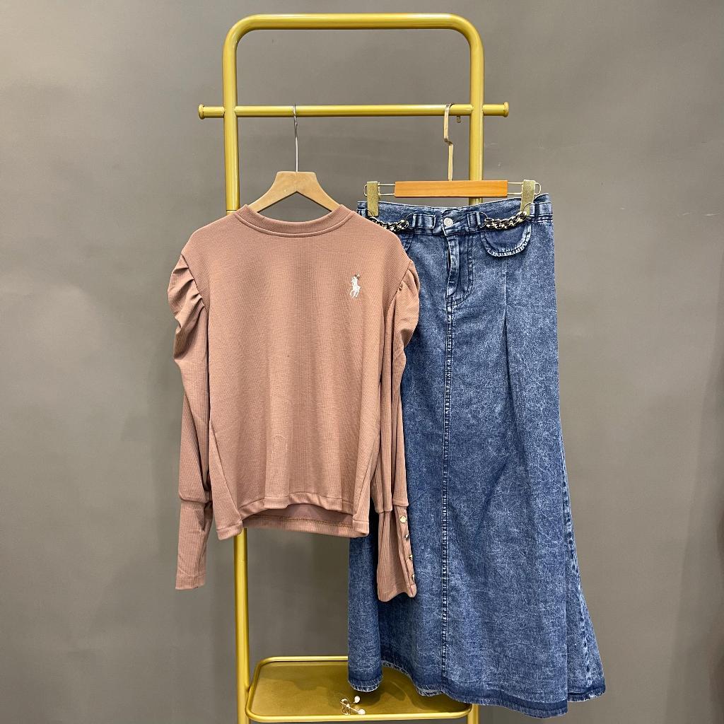 Ayucitra setelan rok selly oneset polos casual style pakaian wanita kekinian