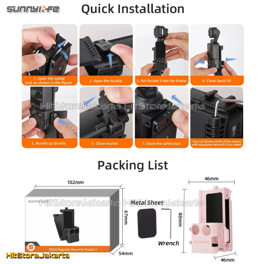 Sunnylife Magnetic Mount for DJI Osmo Pocket 3 Tabletop Bracket With 1/4 Adapter Cold Shoe Multi Expansion