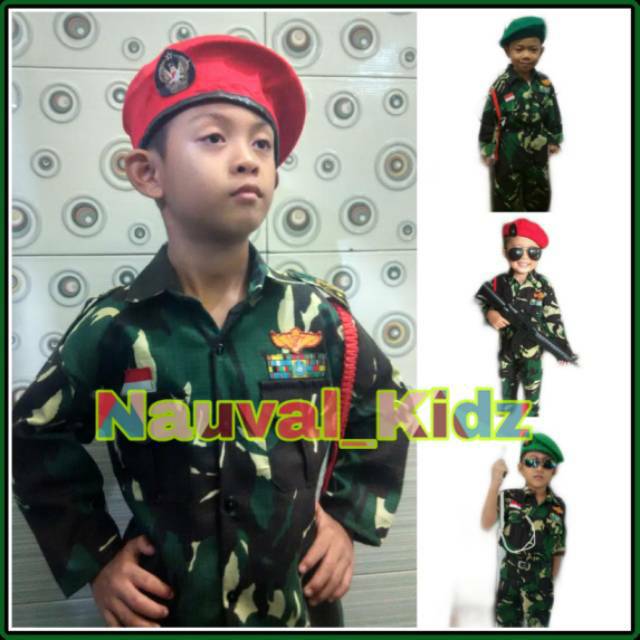 Baju Kostum Seragam Karnaval Profesi Tentara / ABRI / Doreng Anak 3-14 tahun khusus baret )