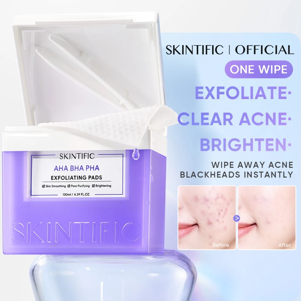 SKINTIFIC AHA BHA PHA EXFOLIATING PADS | Exfoliasi Wajah Clear Acne Blackheads Skin Smooth Peeling Pencabut Komedo