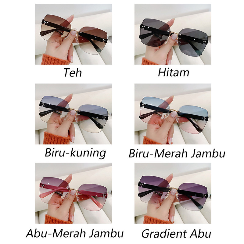 Kacamata Hitam Wanita Pria Tanpa Bingkai Bentuk Kotak Persegi Desain Mewah Untuk Sunglass Anti UV400