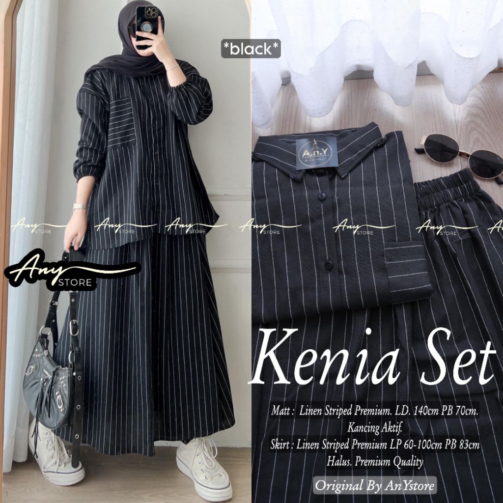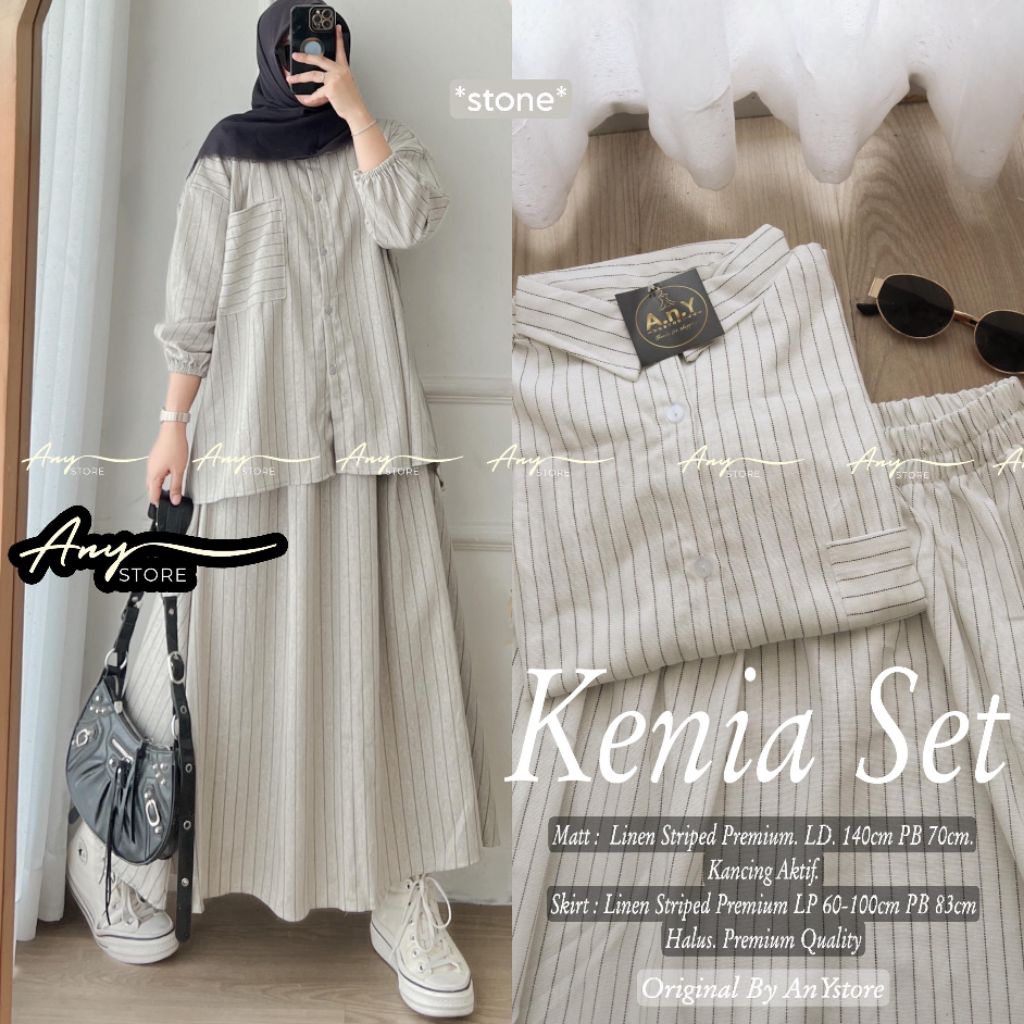Kenia Set setelan atasan dan rok panjang linen striped Premium outfit kampus kerja kantor hangout syari kekinian daily set one set wanita by ANY