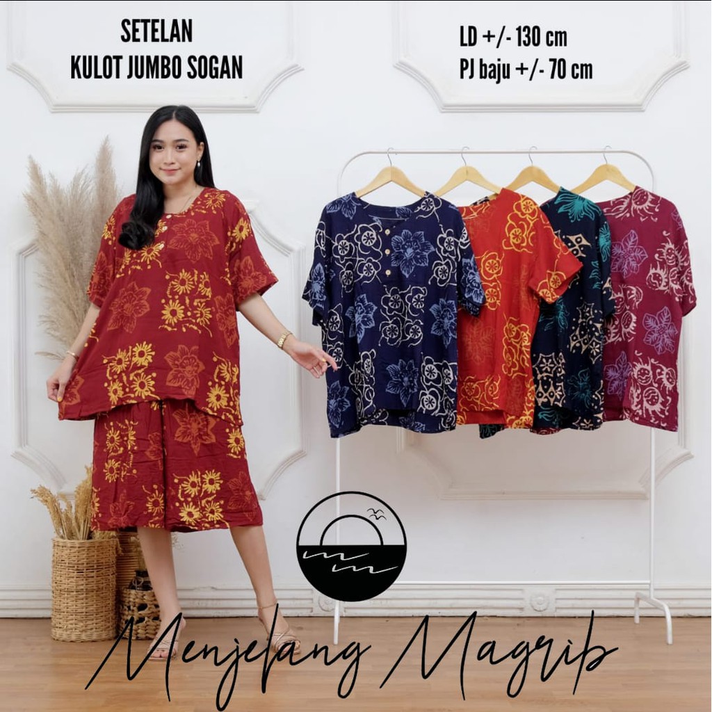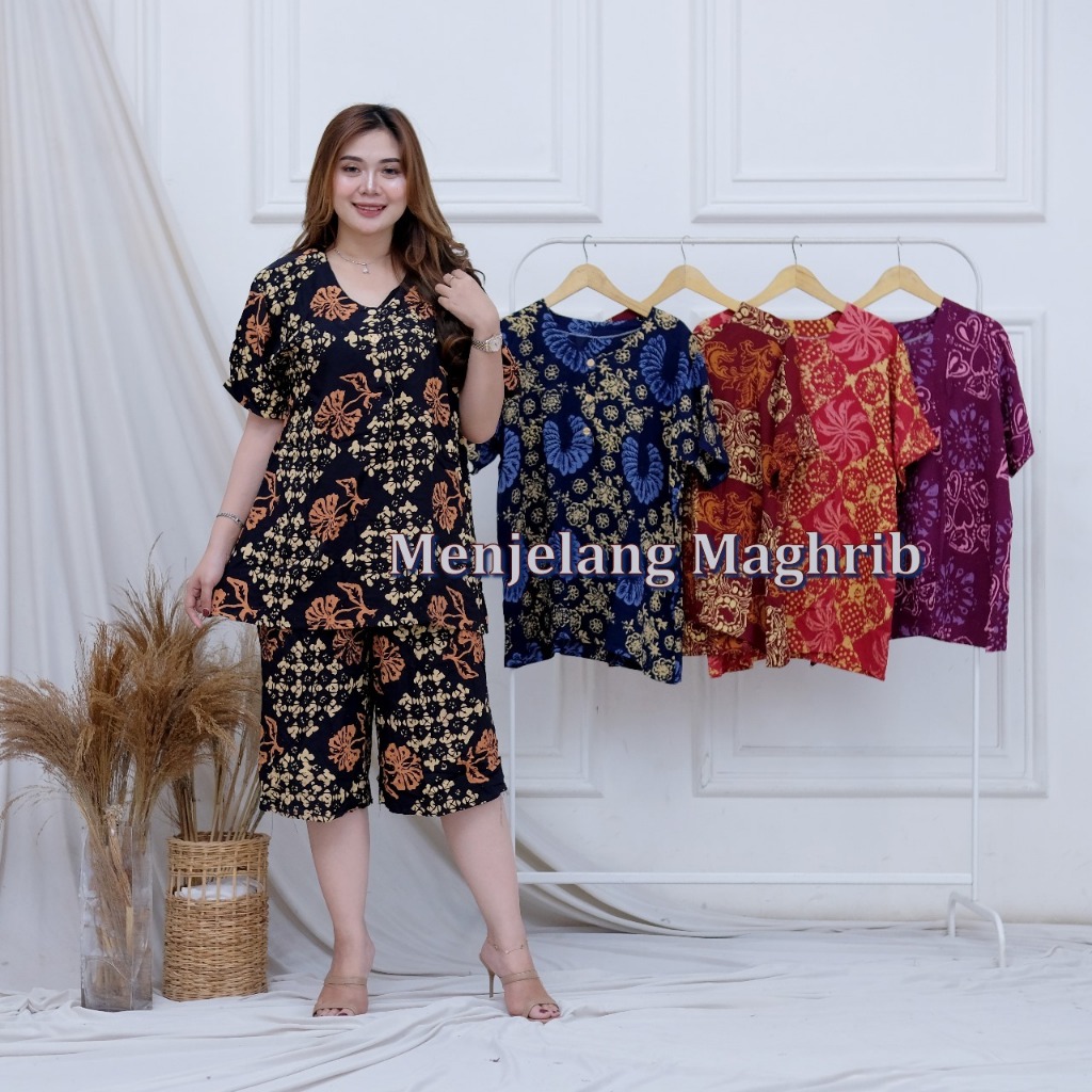 batik cap setelan celana pendek wanita kancing tiga