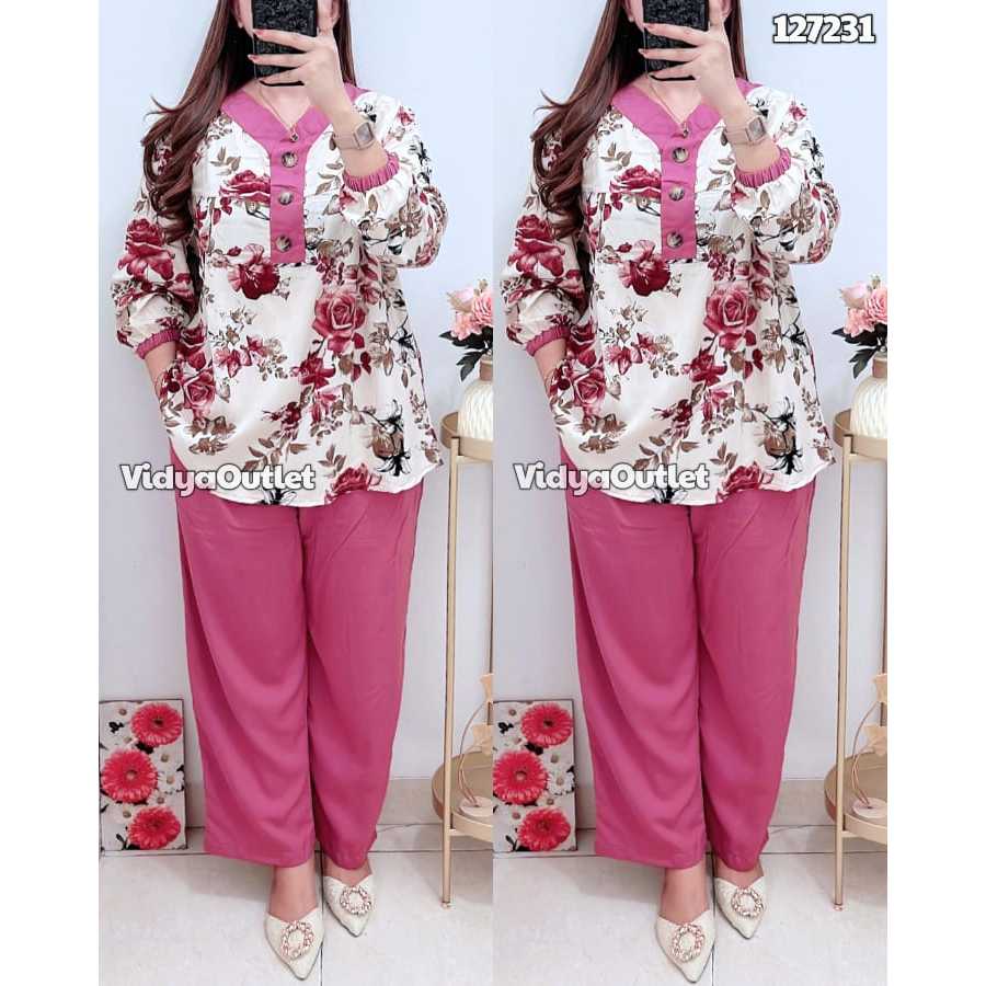 VIDYA - Setelan Bunga Rose 127231 - Set Wanita Panjang - Bawahan Polos