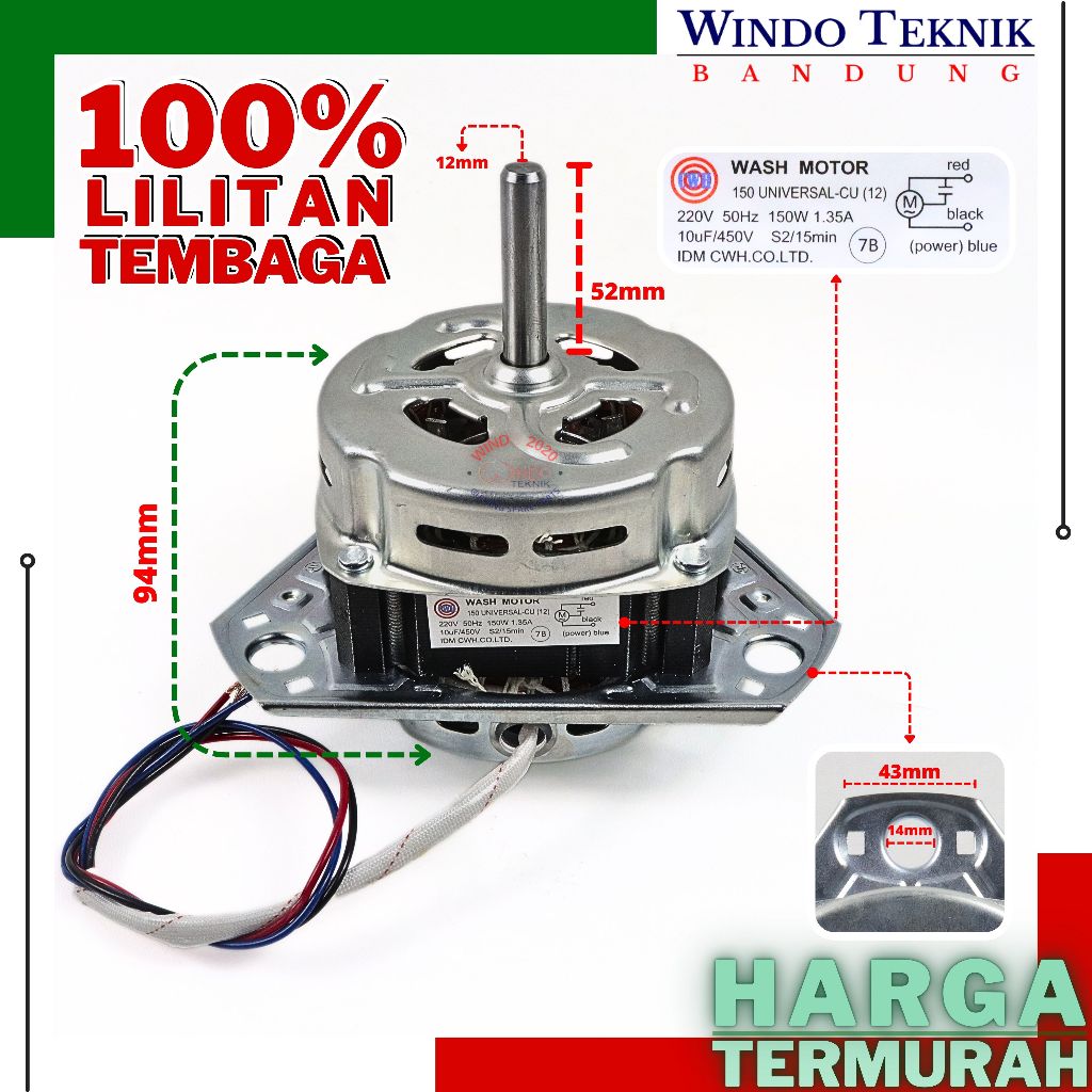 DINAMO MESIN CUCI | DINAMO WASH | DINAMO PECUCI | DINAMO PEMBILAS GULUNGAN TEMBAGA STANDARD | MOTOR PENCUCI MESIN CUCI S