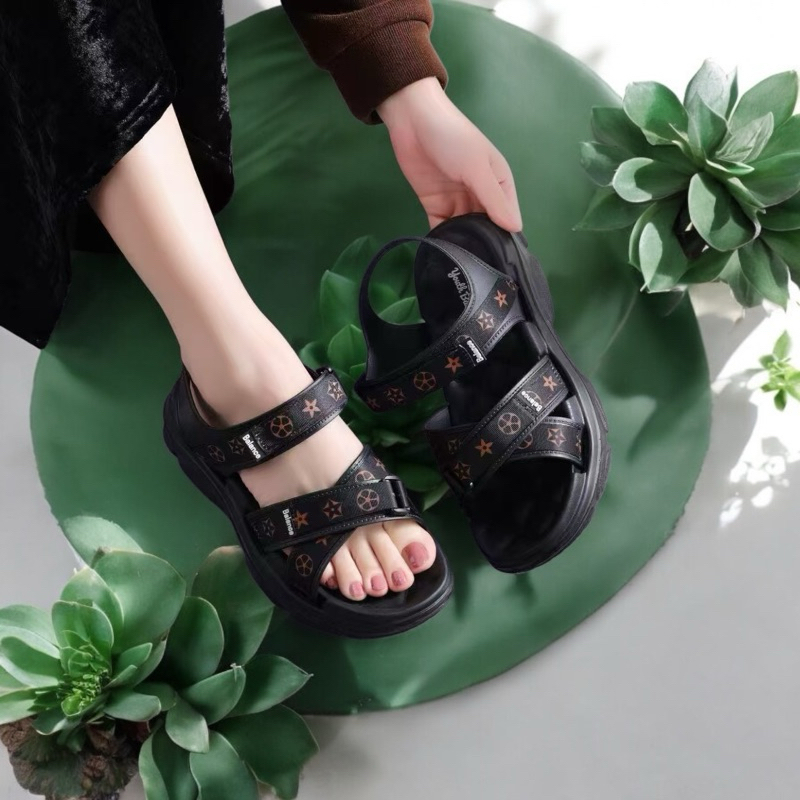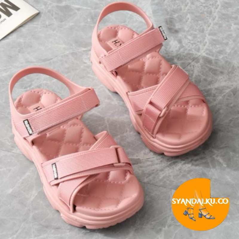 [Syandalku.co] Sandal Wanita Gunung Import EVASOFT Tali Silang Kekinian Luxury PVC E8090-2 (L9)