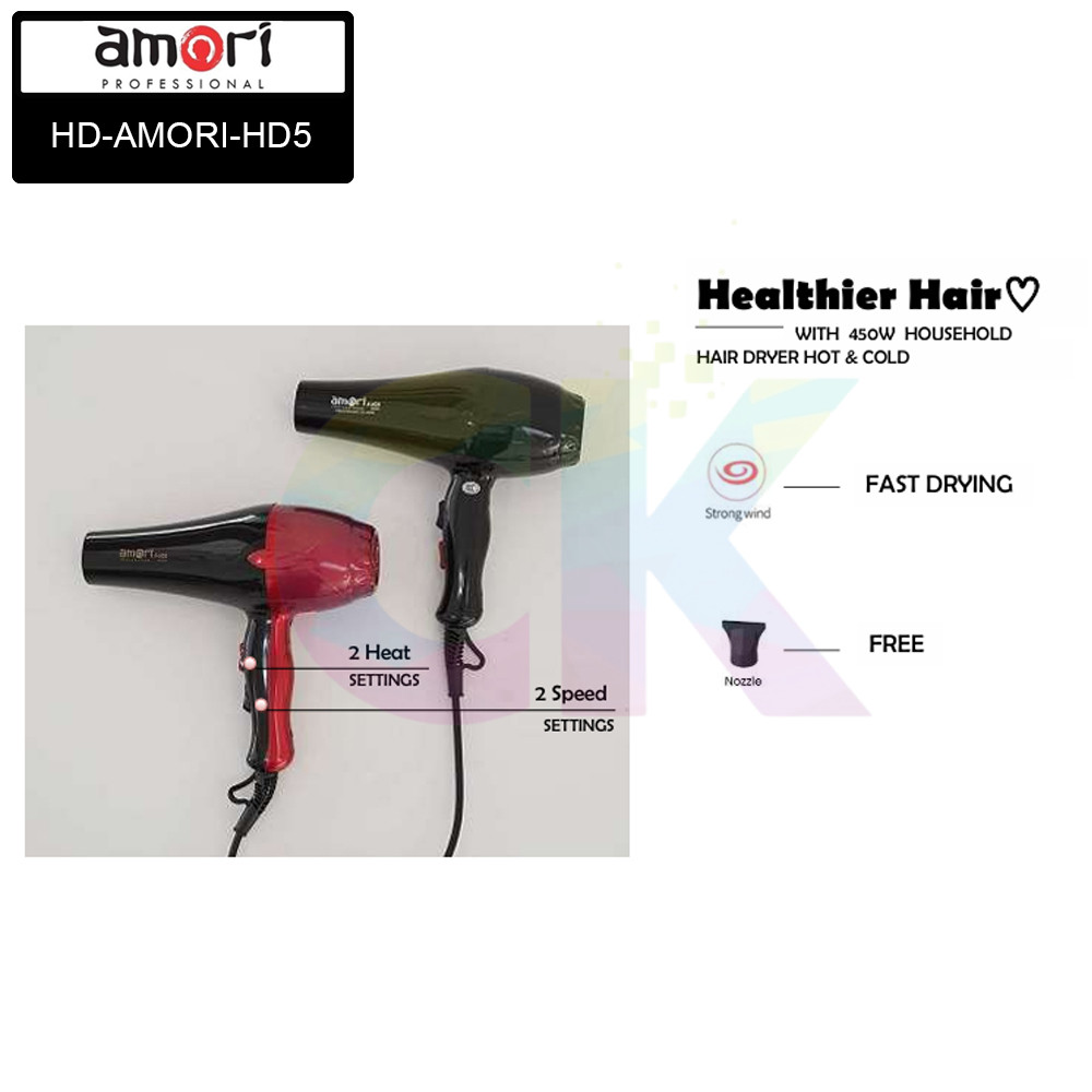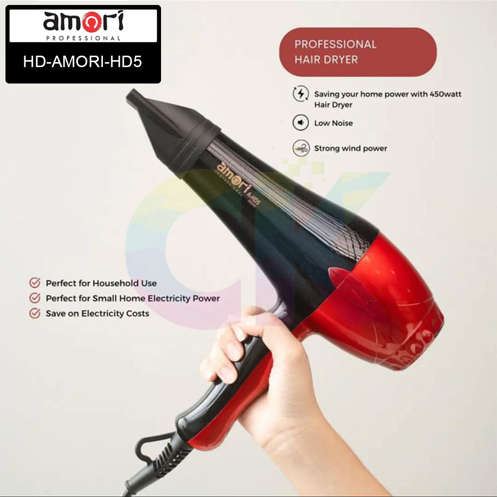 HD-AMORI-HD5 / Hairdryer (Pengering Rambut) Low Noise Daya Rendah 450 Watt / AMORI - CK