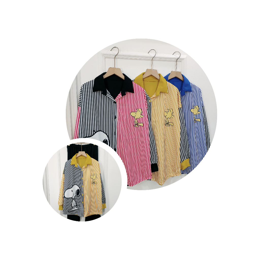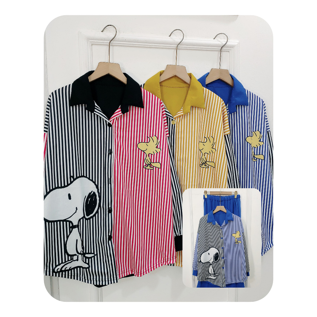 YM yimie fashion setelan oneset wanita dewasa || crt 1124 - set salur snopy & celana cutbray (produk lokal)
