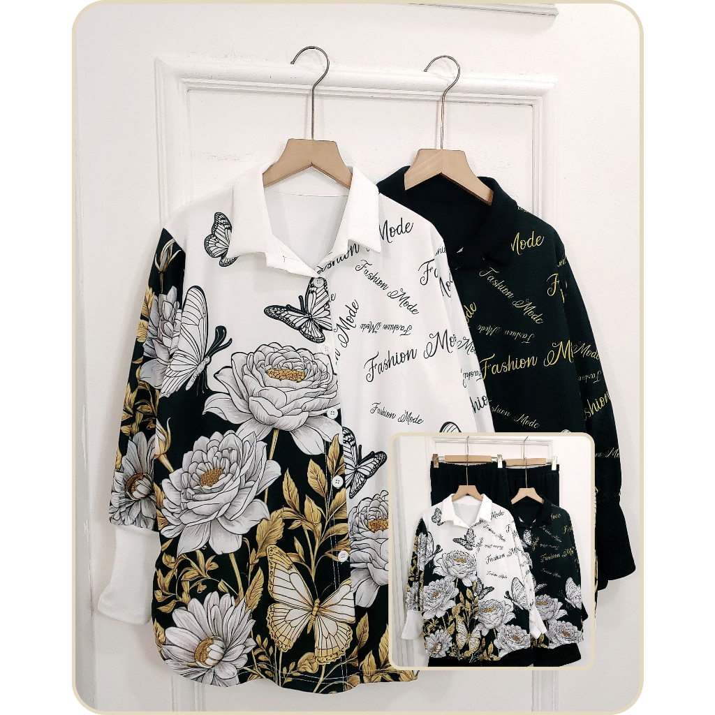 YM yimie fashion setelan oneset wanita dewasa || set melati buterfly & celana cutbray (produk lokal)