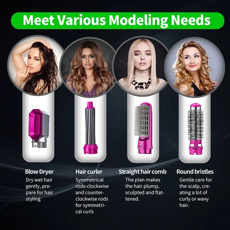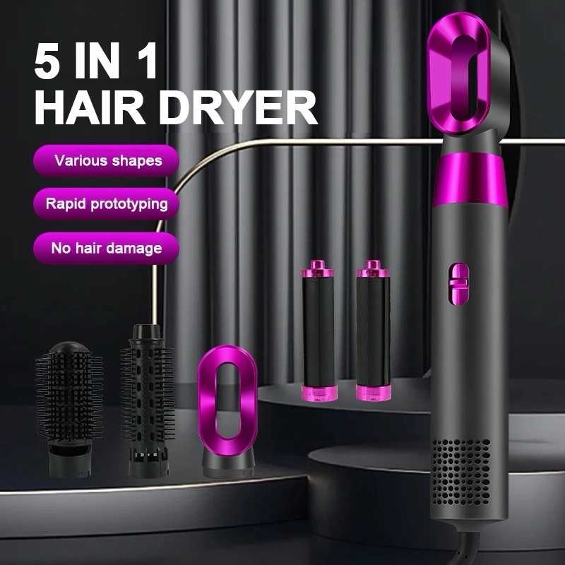 Hairdryer Multifungsi 5 IN 1 Hair Dryer Pengering Rambut Salon Low Watt Catokan Hedrayer Sisir Blow Catok Curly Pelurus Rambut