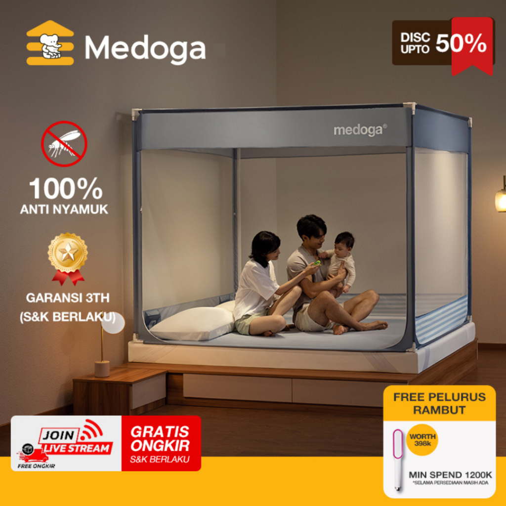 Medoga Kelambu Anti Jatuh Anti Nyamuk Tenda Bayi & Dewasa Jumbo Kotak 160x200 180x200 200x200