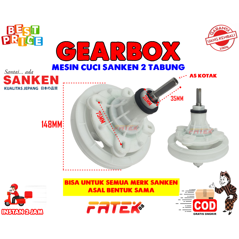 GEAR BOX MESIN CUCI 2 TABUNG SANKEN AS KOTAK UMUM | GERBOK / GEARBOK / GEAR BOK / GEARBOX / GIRBOX / GERBOX