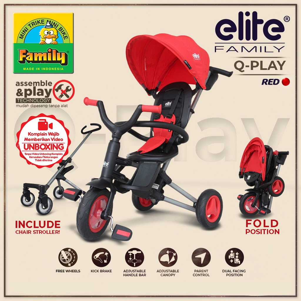 Family Sepeda Roda Tiga Anak Sepeda Roda 3 Bayi Tricycle Anak Sepeda Anak New Model Elite - Q-Play 5 in 1 Bonus Chair St