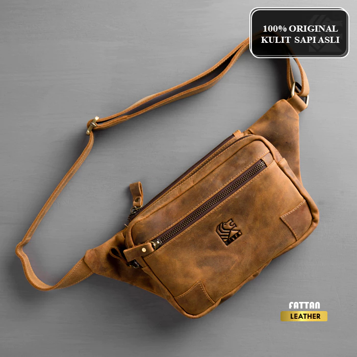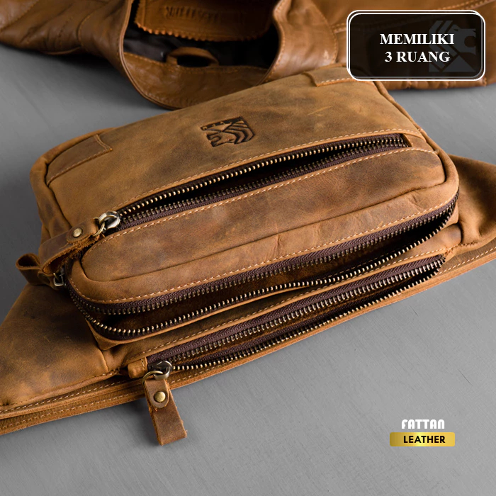 Tas Selempang Kulit Asli Pria Original Branded 100 PERSEN Premium Leather Bag - Slingbag HZR