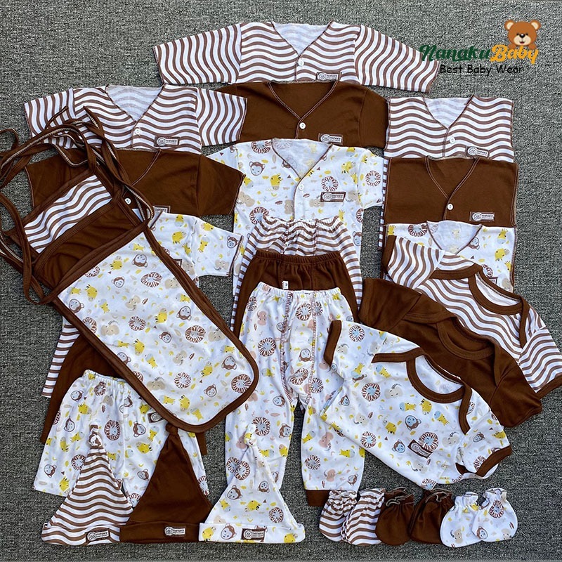 Nanaku Baby - Paket Lengkap Perlengkapan Bayi 36 Pcs Series Abu & Cream – Katun Premium Super Halus SNI