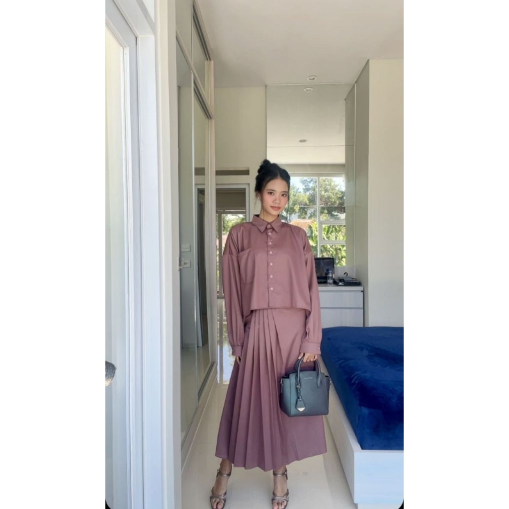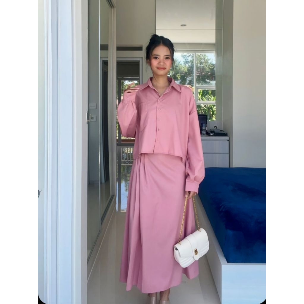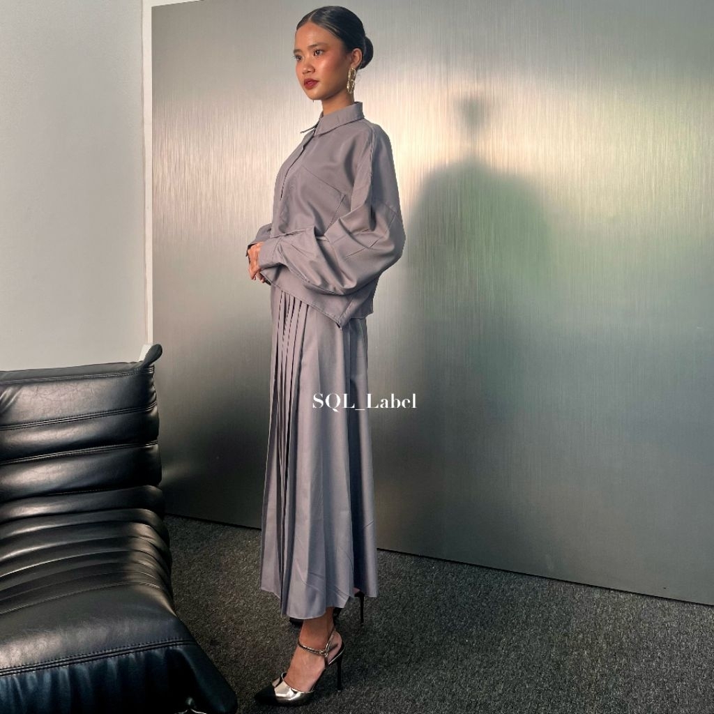SQL Label Valentina Set Rok Rempel+Kemeja Panjang | Outfit Kerja Wanita | Setelan Hijab Korean Style
