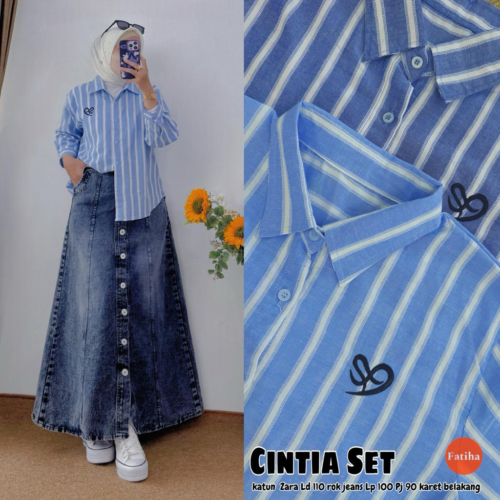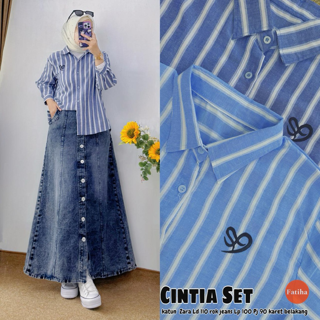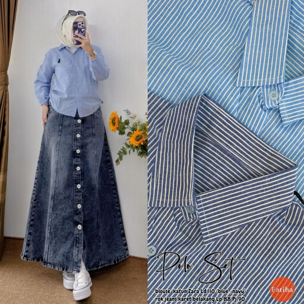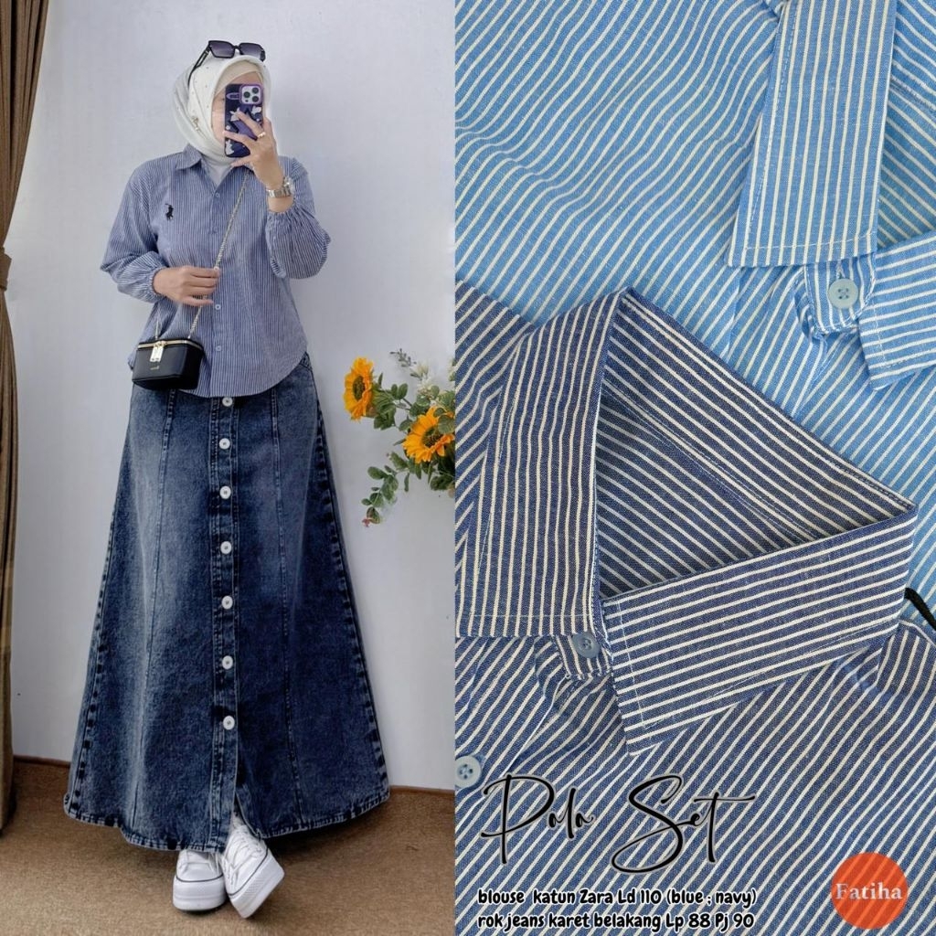pilo setelan rok jeans plus kemeja viral nanda set rok kekinian set kemeja salur