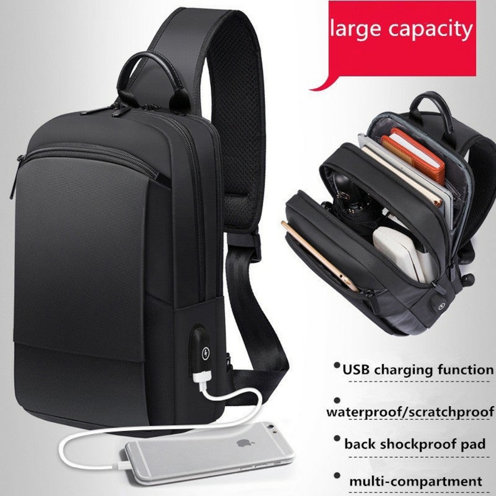 BG77112 Tas Selempang Sling Shoulder Chest Bag Cowok Pria Tablet Ipad 7.9 USB