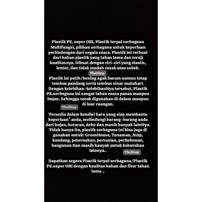 4x3 M. Plastik Terpal Serbaguna.. Penutup, Atap, GreenHouse, Budidaya, Pelindung Barang, Furniture..