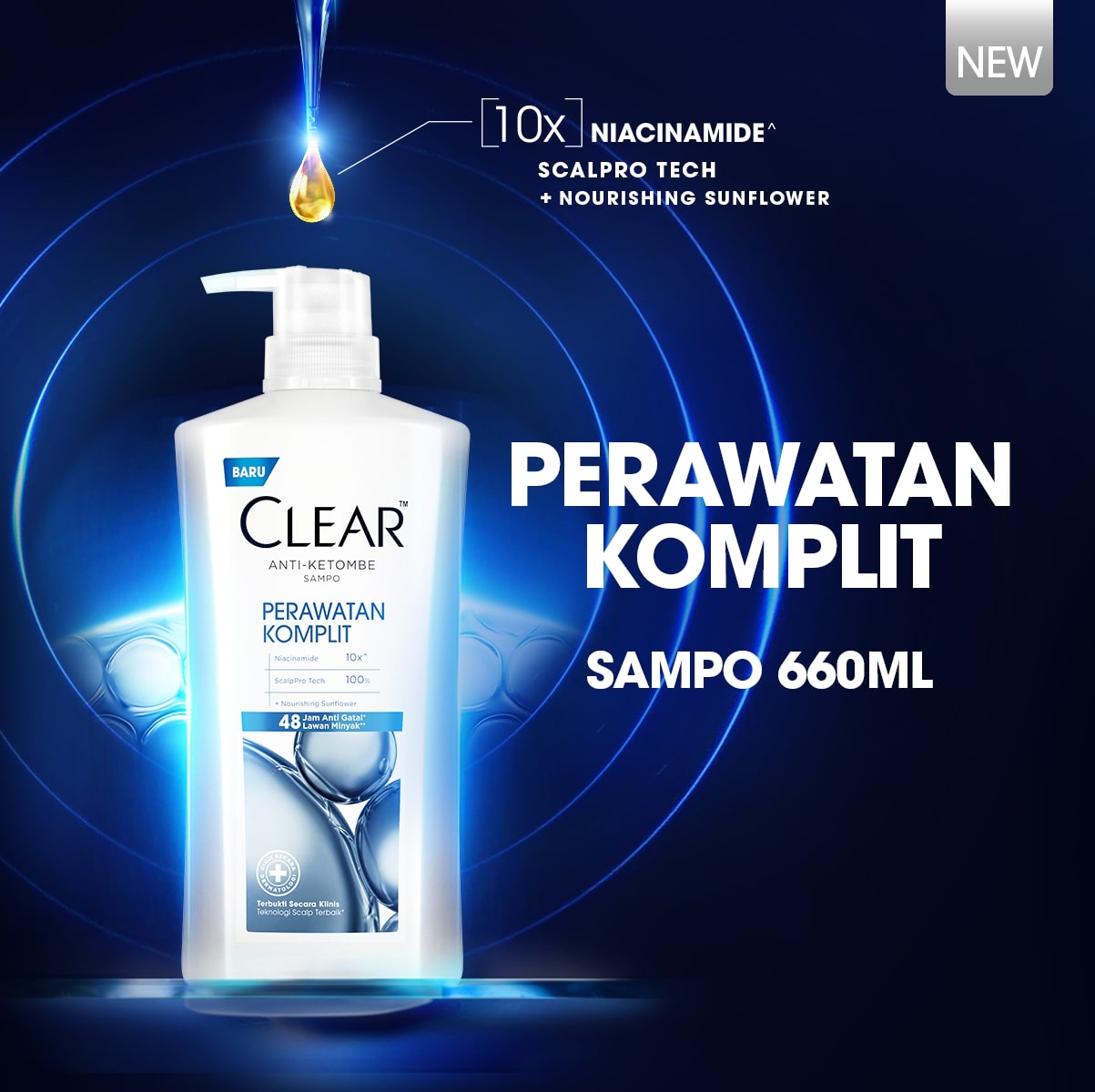 CLEAR Shampoo Anti Ketombe Perawatan Komplit, 48 Jam Melindungi dari Gatal dan Lawan Minyak dengan 10x Super Vitamin - 660mL