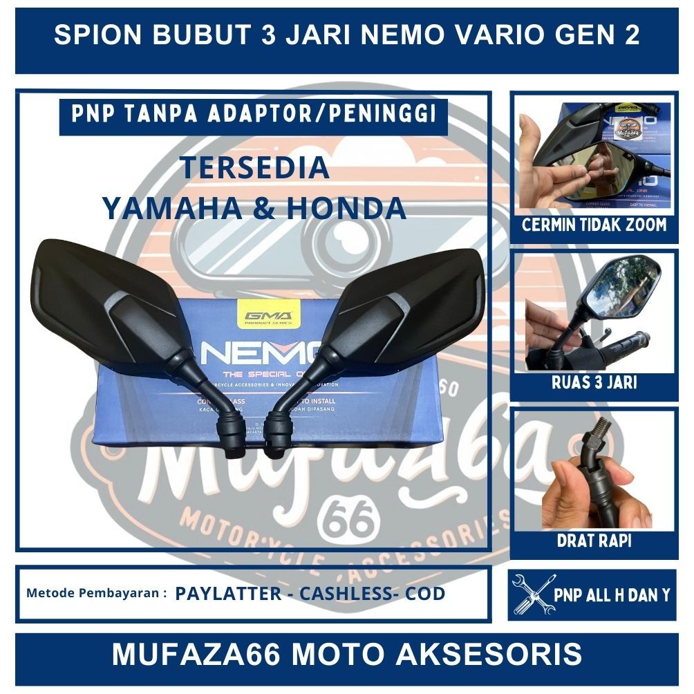 Spion Nemo Vario Gen 2 Original Bubut 3 Jari Tangkai Pendek Tanpa Adaptor PNP Honda & Yamaha
