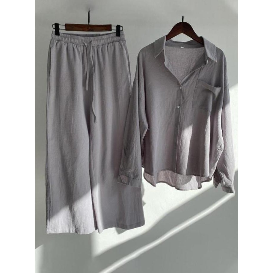 Promo Baju One Set Crinkle Airflow - Furry Set 2In1 - Setelan Wanita Korean Style -Setelan Atasan Oversize Celana Panjang - One Set Wanita Dewasa